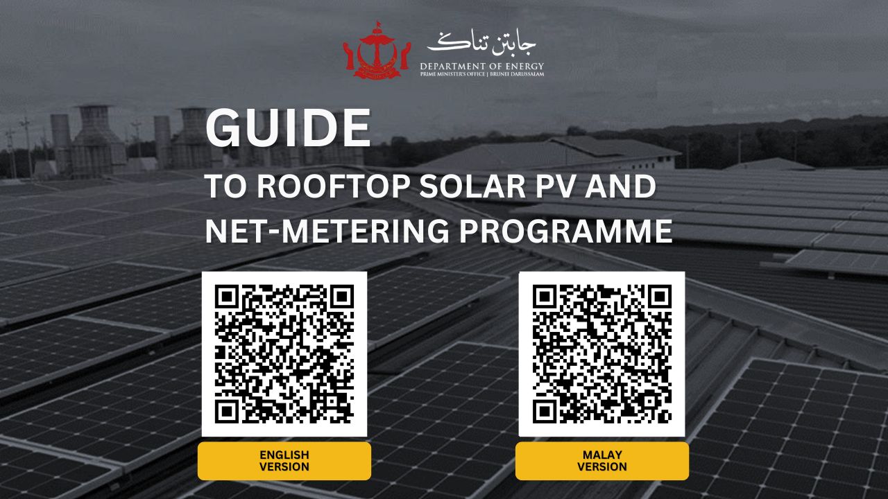 Guidebook for Solar PV Rooftop and Net-metering Programme serves as a reference or guidance for the public who wish to explore the opportunities in producing their own Renewable Energy on their own. The Guidebook entails general information on how to start planning for your solar PV system, how to enroll in the Net-Metering Programme, estimated cost of Solar PV system, etc. The Guidebook is a live document, and will be constantly updated and revised by the Department based on the latest information and requests from the Public (if any). Click here to view the document.